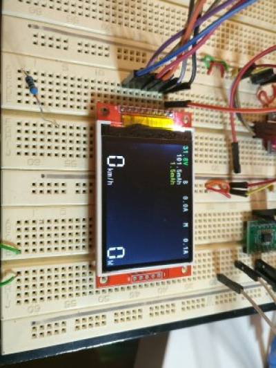 VESC und Teensy sprechen über den CAN Bus miteinander. Es werden verschiedene Parameter wie Geschwindigkeit, Leistung, Energie und Reichweite angezeigt.