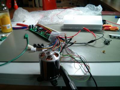Mangels Ahnung welchen der Motoren von Hobbyking man kaufen soll, habe ich den falschen bestellt. Dieser 192KV Motor mit „3000W“ lief natürlich etwas zu schnell und hatte zu wenig Drehmoment. Wegen des knappen Budgets, musste ich den Motor dann neu Wickeln auf ca 140KV. Das war ein Mega Aufwand den man kein zweites Mal machen will.