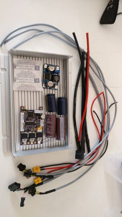 Der VESC kommt in eine Alu Box mit einer kleinen Teensy Platine dazu zwecks Ansteuerung von einem TFT und ein paar Buttons.