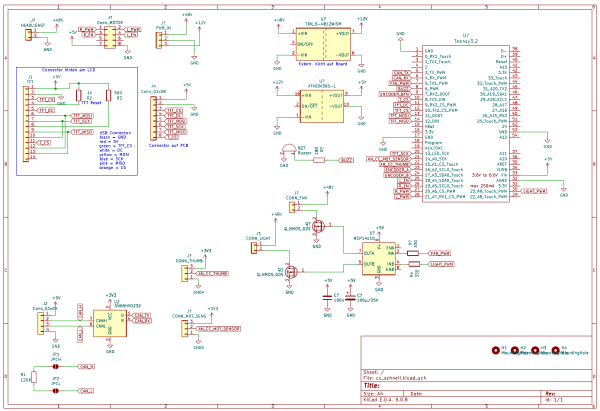 In dem Zuge ist der Kelly-Controller auch raus geflogen und durch einen VESC 75300 ersetzt worden. Dann habe ich meinem Teensy Controller gleich den CAN Bus verabreicht und lese die VESC Daten auch direkt aus. Dann zeigt mir ein kleines TFT auch die Live Daten der Fahrt.
