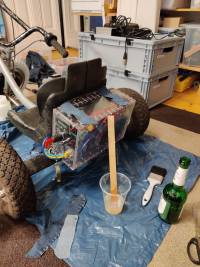 Der Sitz musste mit Epoxy verstärkt werden, da dieser nicht für Erwachsenen-Hintern ausgelegt ist: