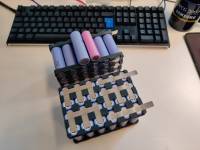 Als Akku dienen wie oben genannt die Samsung INR21700-40T Zellen, gekauft bei nkon.nl. Die sind als zwei Packs mit jeweils in 8S3P Konfiguration einzeln mit JST und XT60 Steckern. Die Akku Packs habe ich mit 3D-gedruckten Haltern gebaut und selber Nickel-Strips dran geschweißt. (Siehe 3d_parts Repo)